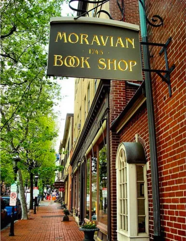 La librería fue creada por los moravos, una comunidad protestante de origen europeo que llegó a Pensilvania en el siglo XVIII. Para ellos, la lectura era parte esencial de la vida espiritual y educativa, por lo que fundaron una pequeña imprenta y un espacio de venta de libros, destinados tanto a la formación religiosa como al aprendizaje general.